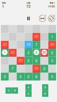 1020是一款数字益智手游,玩法简单,玩家需要将3个数字相加得到10或20,玩法类似于2048,消磨时间,快来下载吧!