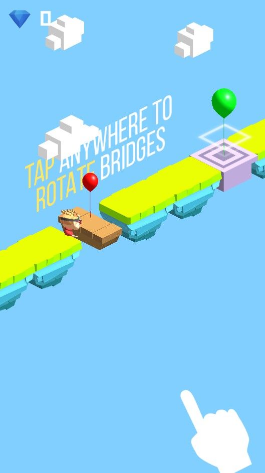 清新卡通风格的游戏画面,只需一根手指点击屏幕进行木板的翻转即可,完成各式复杂的悬桥挑战,让小男孩安全的通过,最终搭上气球安全逃离这迷宫吧!
