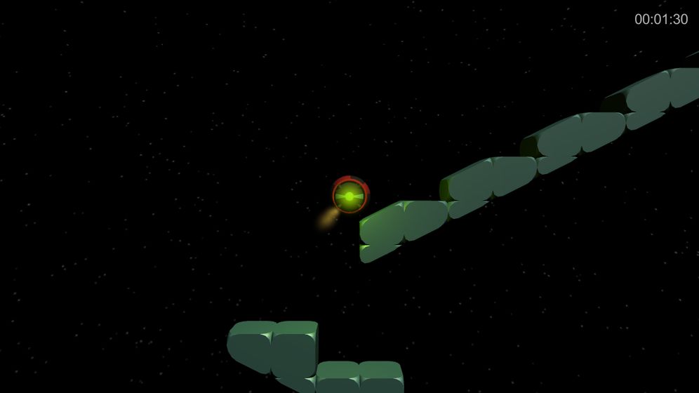游戏的大面积昏暗背景,使人昏昏欲睡,还会审美疲劳,但游戏的点睛之笔在于独轮的绿色光点,在黑暗中悦动,画出盈动飘逸的绿色线条。