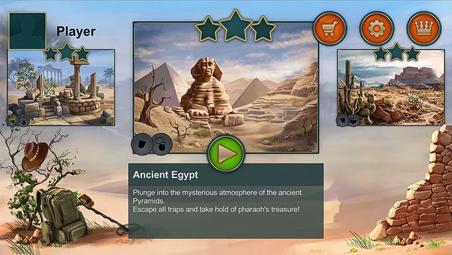 2、游戏中拥有超级多的宝藏地点,都等着你来寻找哦,游戏画面非常精致,配合古老的音乐效果;