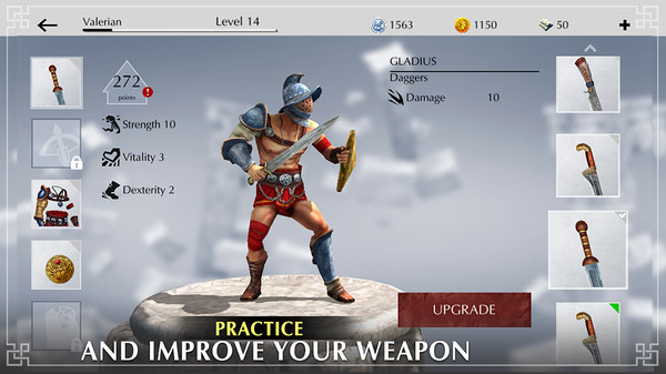 在战斗中赚钱来定制你的角色,制定经营计划,让敌人的血溅到竞技场,和他们战斗到最后一刻,成就是最高成就的荣耀。