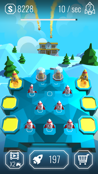 1.放置也能够摧毁全世界2.融合成更高级的大火箭3.夸张的动画效果与特效4.融入了一些点击和放置要素