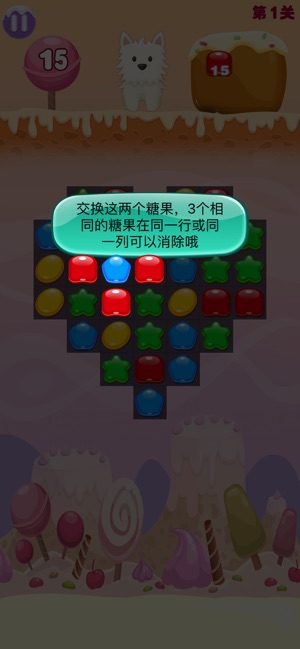 1、可爱小狗需要你的喂养!通过消除获得更多的食物!