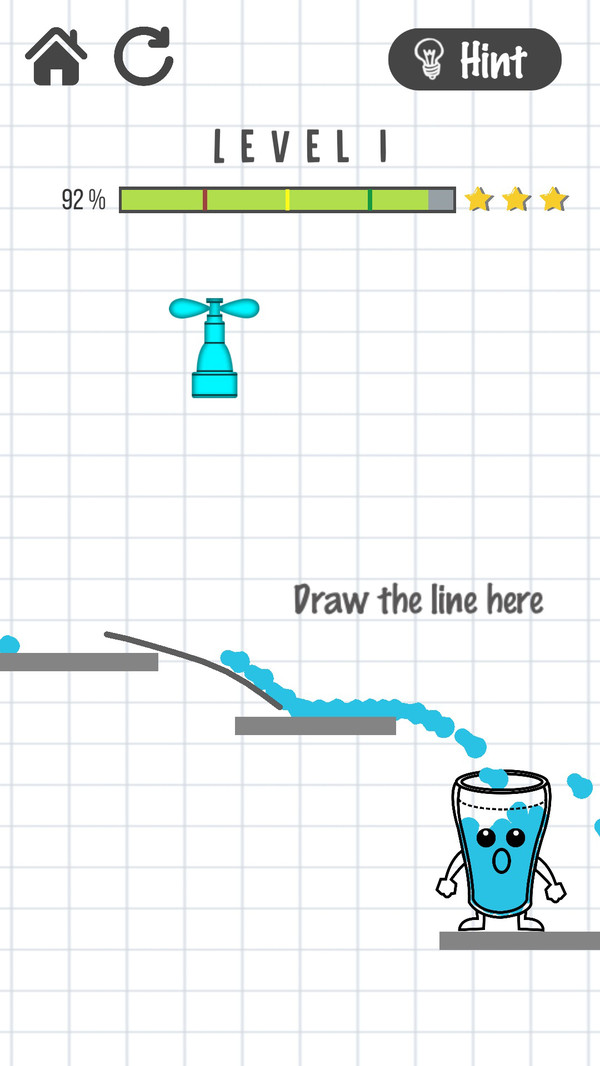 笑脸玻璃杯是一款趣味十足的休闲益智小游戏,游戏玩法简单,采用关卡闯关的玩法,玩家在游戏中通过划线来使液体准确的流入杯中,把杯子填满会露出真诚的笑容,开动你的小脑筋吧!
