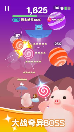 杀死多彩糖块,解救枯燥乏味无所事事,超趣味的休闲娱乐解压游戏。拿喜欢你的趣味性武器装备,杀死有着各种各样工作能力的糖块。副武超级变身可爱萌宠,击败"滑稽"得到超强力专业技能,也有奇妙糖块Boos守关。感受 糖块爆裂、晶石爆屏、视频弹幕全屏幕的高潮!射爆瘋狂坠落的糖块,一块儿踏入甜美之行吧!