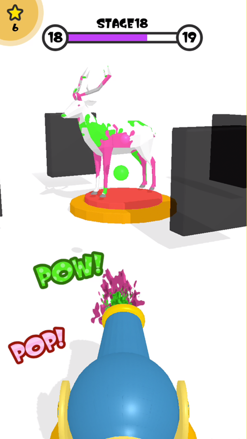 你需要根据等级完成你的着色任务,这样你就可以进入下一个等级,有趣的着色挑战,使用加农炮发射颜色,以及阻止你移动的障碍。