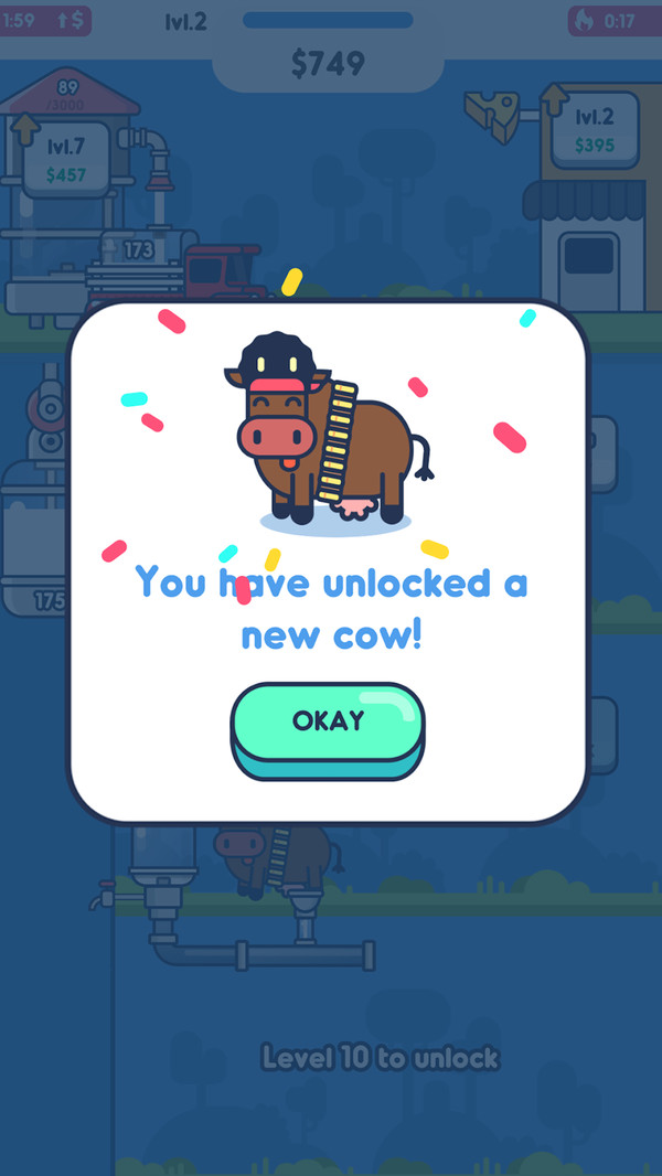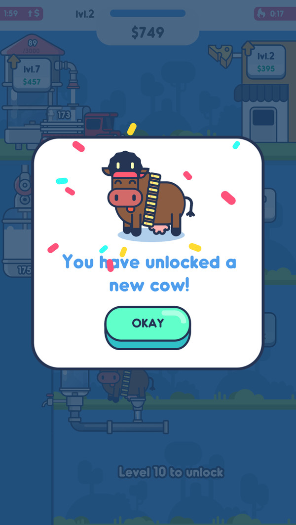 牛奶工厂是一款养牛的工厂管理游戏。游戏中玩家需要控制你的牛去自动挤奶机挤奶,收集牛奶并集中售卖,让牛奶走进千家万户,人人都能喝到便宜好喝的牛奶。不过也需要不断更新,通过赚来的钱解锁新品种奶牛。