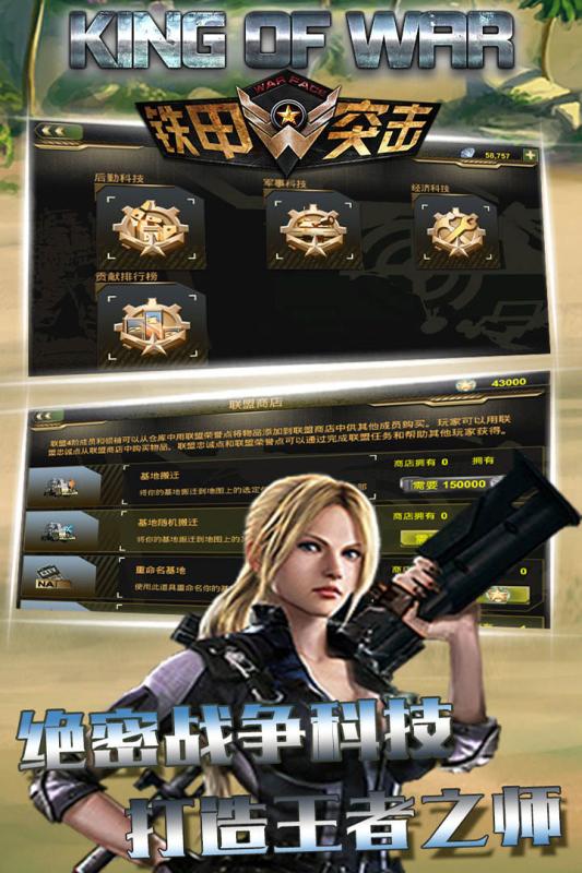在上百人的战场中,单人的力量终归有限,一个好的团队将为一局游戏的胜利奠定基础,《铁甲突击》的军团系统将不仅是一个聊天的工具,而是沟通战略方针和商讨排兵布阵的作战指挥部,玩家不仅可以在战场中建造军团城市使用高级兵种,还可以可在军团中商讨战术、玩法,闪电战、城市攻坚、航母偷袭、骚扰牵制等诸多战术,将由你的军团在战场中亲身演绎。