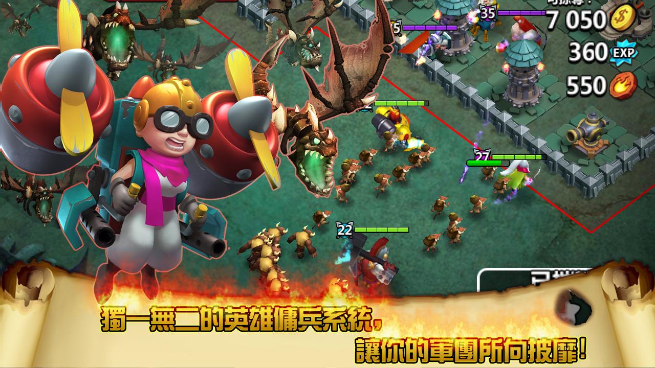 畅快激昂——英雄与士兵完美结合,体验掌间的军团行动!无需训练士兵,英雄只要存活就任你去战斗!