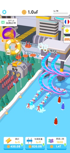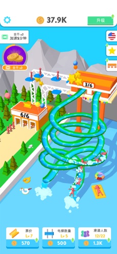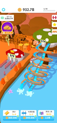 还好有赚钱的设备,这样我在前期度过危机,机智的我最终决定将所有的金币打造出全新的水上乐园,终于稳赚了一波!