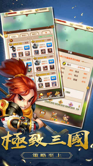 三国精锐全数登场,跨阵营玩遍魏蜀吴;独特技能,缘分羁绊,排兵布阵,瞬息万变。