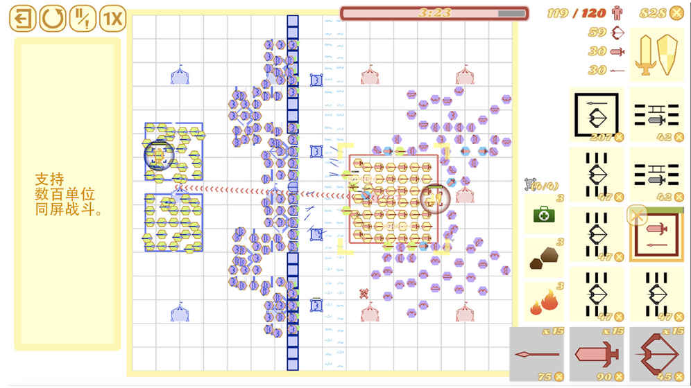 独创的“实时战阵系统”,支持数百单位同屏战斗,全战场自由走位,随时操控,指哪打哪。