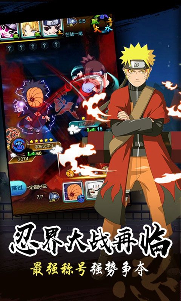 2、收集大量卡片忍者角色组成忍者团队,并在战斗中体验无限乐趣。