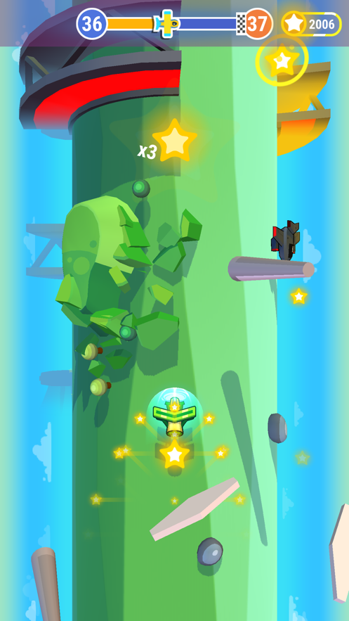 在游戏中,你将控制一个小飞机,需要避开柱子上的障碍物,沿途收集星星,之后就是升级自己的飞机!