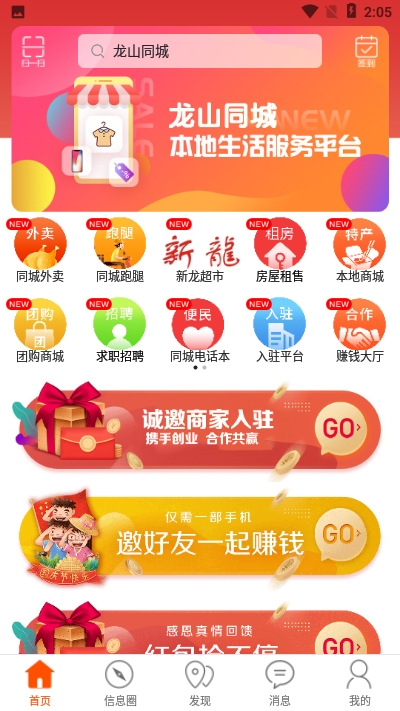 龙山同城是一款本地化手机软件,它整合了本地论坛、网上商城、外卖快递、积分红包等特色功能。龙山人的社交圈子,信息中心,网络购物平台。最新鲜的好玩事儿,集合了社区论坛、本地商城、外卖跑腿、积分红包等特色功能。龙山人的社交圈子,信息中心,网络购物平台。一个app就可以藏尽龙山动态,让您足不出户享受便捷移动生活。