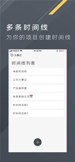 《大事记》作为一款可以帮助小伙伴们记录生活中的点滴与回忆让你子某天想起能怀念时光会心一笑的应用软件,这里有着多种主题或者项目,创建多条时间线,也可以针对规划类的,比如考研日历,考试安排,简单行程安排。