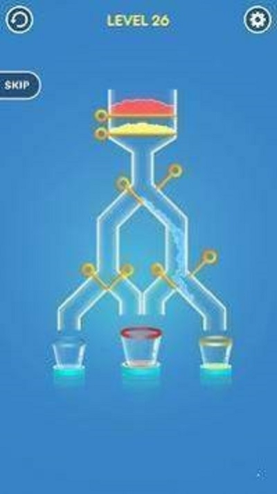 一款非常好玩有趣的休闲益智类闯关游戏。玩家将在游戏中将混合的液体通过管道来进行分离,让不同颜色的液体流向相同颜色的杯子里面。游戏的操作非常的简单,你需要按照指定的顺序来操作机关,改变液体的流向。