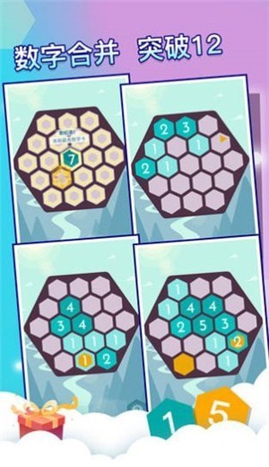 2、实现各种特殊的合成效果,按照你的观察,来仔细的移动关卡中的数字组合,认真思考,来确认每一个步骤的正确性;
