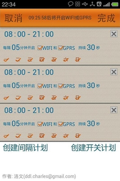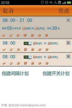 该款应用是基于跨平台的 Flash AIR 运行的,最大的优点是能在不同的设备中运行,但是可能需要您安排一个 AIR 运行时环境。 自动联网能够在计划的指定时间内自动连接或关闭WIFI或GPRS,在网络数据接收影响较少的情况下,使设备更省电更省流量,是一款非常不错的网络连接工作。