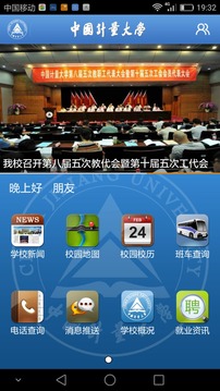 i计量是中国计量大学为全校师生及校友制作的移动应用平台。该平台为用户提供了解校园动态和查看个人信息的窗口。i计量目前包含学校新闻、通知公告、校园校历、班车查询、电话查询、一卡通查询、课表查询、校园信箱、教务通知、就业资讯等信息服务。