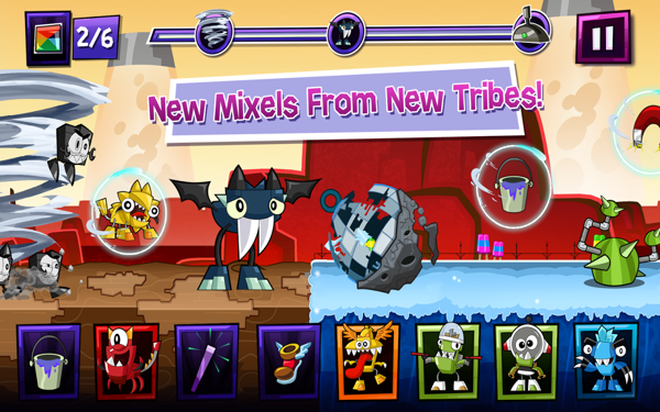 快来玩 Mixels Rush,使用厉害的新合体小精灵,进行疯狂合体来击败烦人的尼克斯!超越尼克斯风暴尼克斯少校释放出了超大级的尼克斯风暴。帮助英勇的合体小精灵克服重重障碍,结合力量并使用特殊道具来超越风暴吧。大量合体小精灵出场见识来自新旧部族的全新合体小精灵角色,包括寒冰族、敲打族、公转族、星光族、长舌族、烈焰族、钢牙族、沼泽族和焊接族。极限合体将合体小精灵进行合体使他们更强大,或组合相同部族的三只合体小精灵,组成锐不可当的超级体!别让捣蛋的尼克斯得逞。用 MIXELS RUSH 快速冲刺吧!