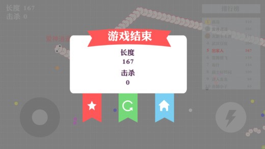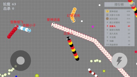 长按加速键,用巧妙的走位让蛇身被别人撞上,就可以吃掉他们啦。