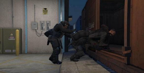 接到人后,触发了坦克增援的剧情,开着铲车以最短距离前进。虽然坦克的AI很笨(或者剧情需要打不中),但走慢了还是会被打中。来到鸡肉工厂中,三人持续和美国大兵交战。千万注意,由于小富没有防爆衣,防御会非常脆弱。可以在崔佛和麦克之间切换。到达月台后,坚持到火车达到,就可以离开了。