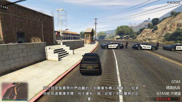 钻动手上车后马上逃离银行,途中会有三排警车挡路,前两波从左侧绕过去。