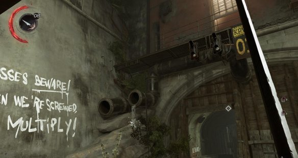 先不急着继续前进,从左边的管道爬上去,可以从窗口爬进去,在这个房间可以拿到第一个骸骨护符。