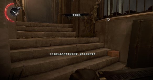 从这里的楼梯走上去后,到达一片中立区域,在这里的角色不被你攻击就不会主动攻击你。