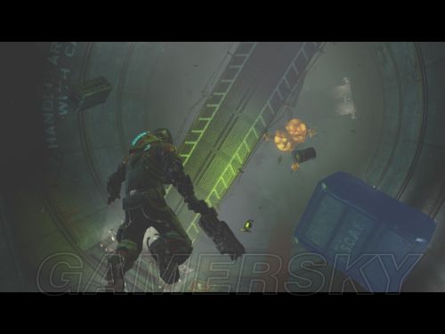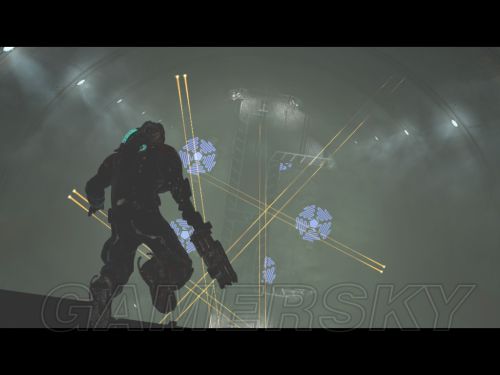 离开大门会来到另一个需飞行通过的地方,打坏激光器通过这时会有几个会发射火光的怪物附着在周围墙面上,需要打掉他们,免受干扰。