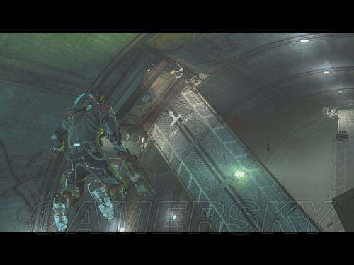 打开门进入零重力状态,指引器指引到大门,进入会来到一个大厅,大厅对面的小门会有3个可以重生的怪物向你走过来,可以等他们离开直通小门的小道后到宽敞的大厅时躲开他们跑到小门打开,逃离这里。