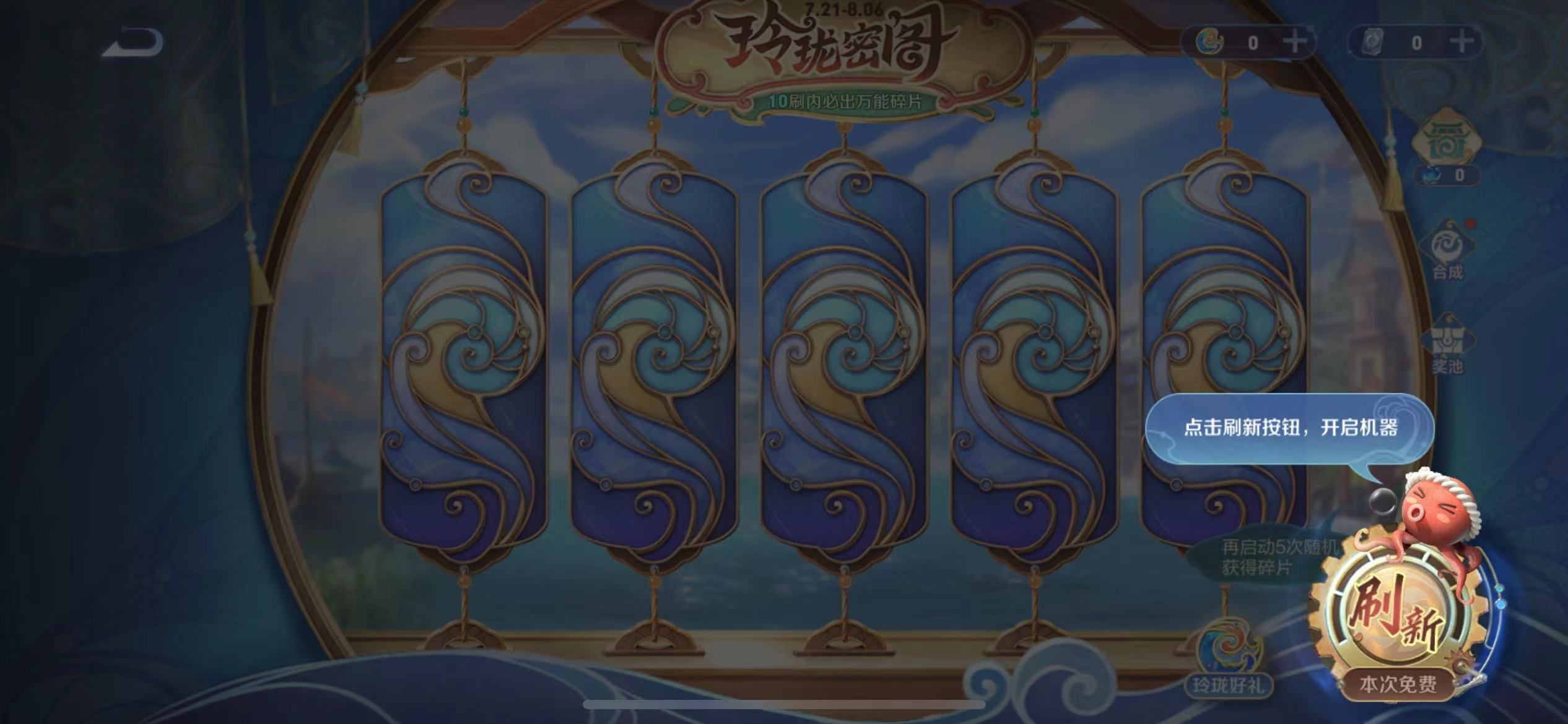 3、而玩家通过使用玲珑币,可以刷新玲珑密阁内的皮肤碎片,刷新机制是: