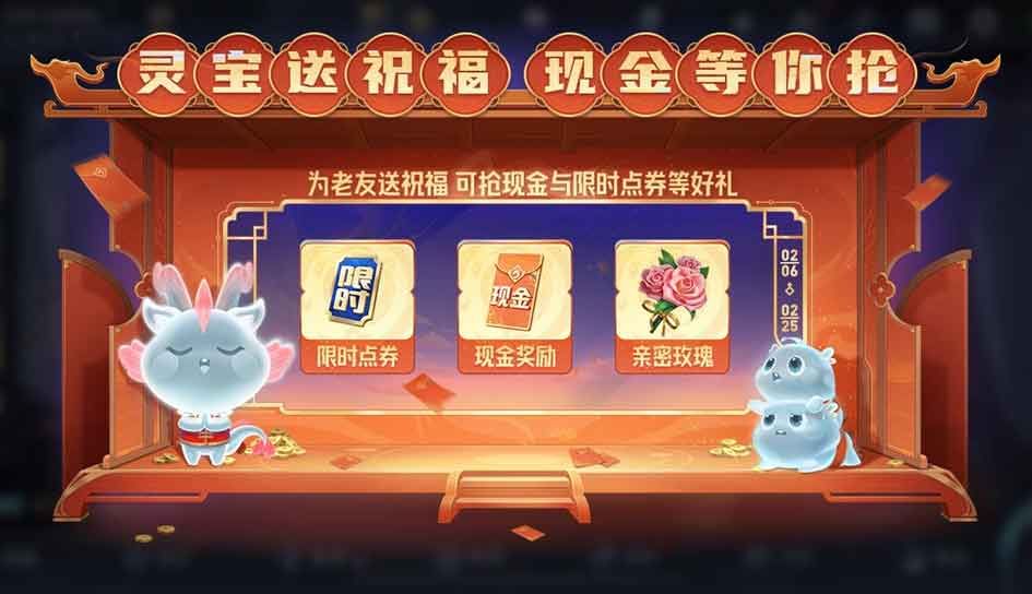 在2月6日~2月19日这段时间里,只要给老朋友发送英雄视频祝福,在老朋友回归后,玩家可以和老朋友一起抢现金和限时点券。