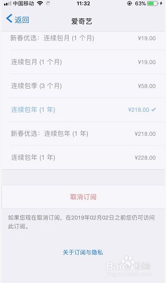 6. 点击该项旁边的“取消订阅”或“关闭自动续费”按钮(具体文字可能因版本不同而有所差异)。