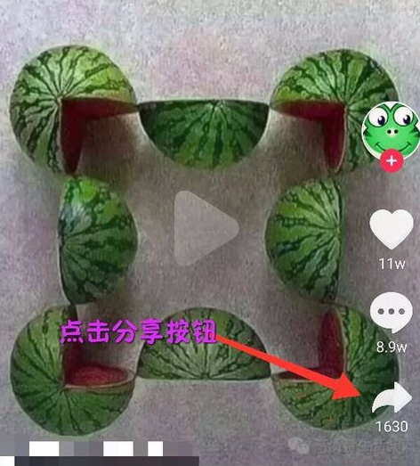 1、看到自己喜欢的视频,点击分享按钮,复制链接。