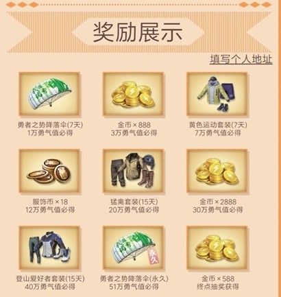 第五步:奖励,玩家拥有51W的勇气值,获得勇者之势永久降落伞皮肤。