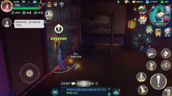 一共三环,第一次找不同,在对应的屏风前面发个普攻就行;第二躲避伞阵,需要坚持十五秒;第三和高姐姐小七打架,打赢就结束了,记得完成第二个一定要回血或者换战力高的上,我冲进去就挂了。
