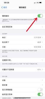 5. 点击“辅助触控”开关,将其打开,此时屏幕上会出现一个白色的圆形图标,即桌面小圆点。