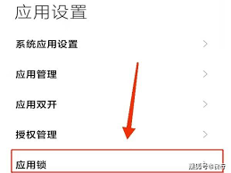 进入“应用设置”页面后,找到“应用锁”功能。如果是首次使用应用锁,系统会提示你设置图案、密码或指纹等解锁方式,按照提示完成设置即可。