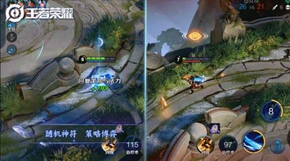 梦境大乱斗中,地图两边新增区域塌陷前会随机刷出治疗神符或者金币神符。召唤师们可以在神符刷新后走近神符进行拾取。
