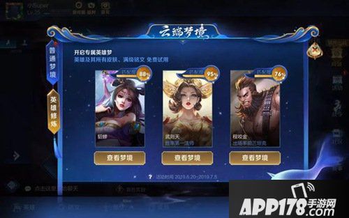 王者荣耀云端梦境是可以让玩家熟练英雄的福利系统,系统会自动给玩家发放免费英雄,玩家可以任意选择英雄的铭文跟皮肤。因为英雄是随机发放,所以有玩家免费获得武则天也是很正常。不过这个武则天只是免费在活动期间使用,想要免费获得还需要完成任务才可以。