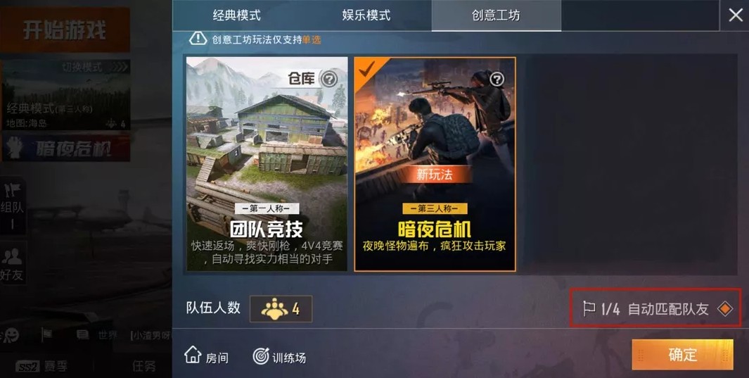 如果取消自动匹配队友,则会根据当前组队情况直接开始,独自参与暗夜危机也是可以的,不过自己既敬佩又担心那些敢于孤身前往挑战的特种兵。