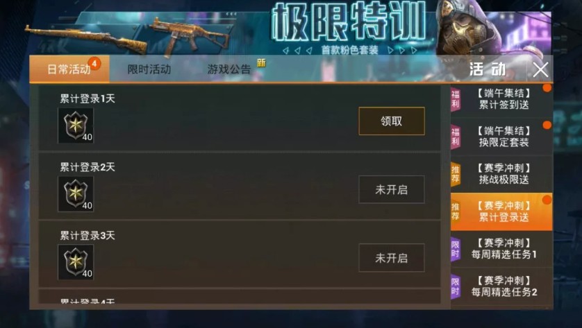 6月18日0:00至6月25日23:59,冲刺福利大放送,海量积分轻松领取!活动期间累计签到5天,即可领取赛季手册积分*200。只需累计登录游戏,便可以轻松获得积分,特种兵们赶快加入吧。