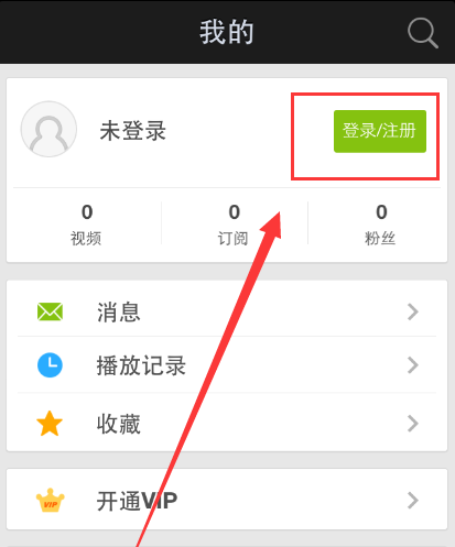 3、在“我的”界面上,点击“登录/注册”按钮。