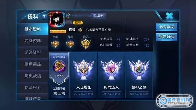 首先我们来看看这位玩家的界面资料,是个荣耀王者段位的大神,而且连续3次得到王者印记。最让小编佩服的是只玩了500多场,就拿了3次最强王者,这才是真大神啊。这位玩家的皮肤数量也有50个之多,但是英雄却只有49个,看来这位玩家是只玩精,不是随便玩的。