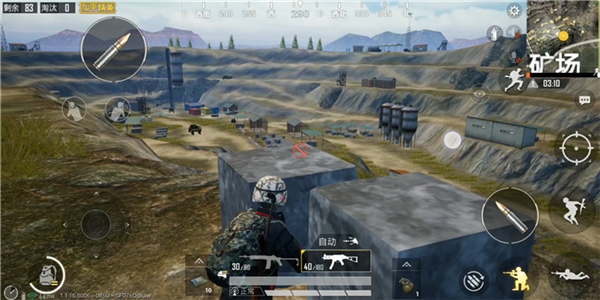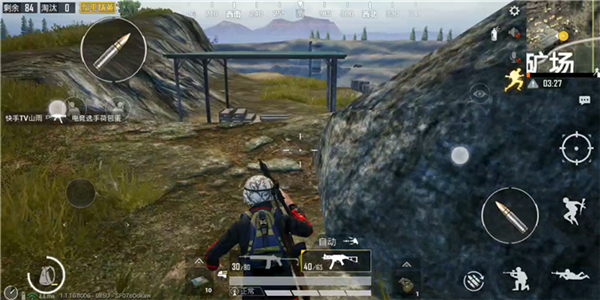 2、爬到快到山顶的时候会有一个平台,这里也会有物资刷新,可以在这里再次丰满一下我们的装备然后在这里可以俯视整个矿场,那里有人一看便知,然后找机会打掉就好。