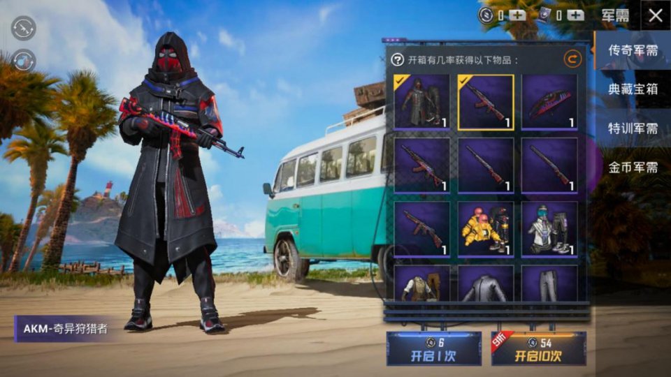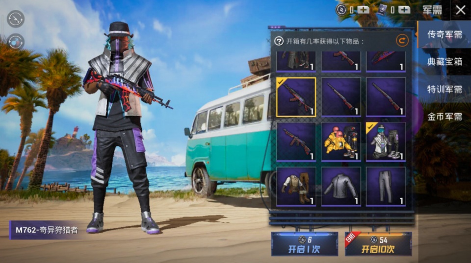 新的传奇军需宝箱和正常的军需一样,开一次需要6元,开10次需要54元。这个军需里拥有非常多的外观皮肤和枪械皮肤。其中比较特殊的就是“奇异狩猎者”系列了,也就是蜘蛛侠风格的套装皮肤。