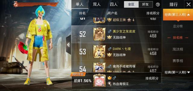 最近,有玩家发现在VX单排无敌战神榜单中,有一位无敌战神拥有一套黄色的风衣,蓝色的发型,红色的草莓平底锅。