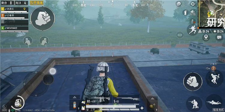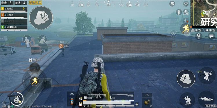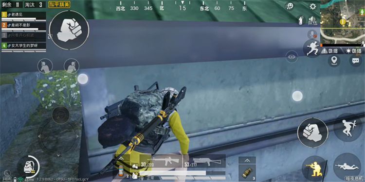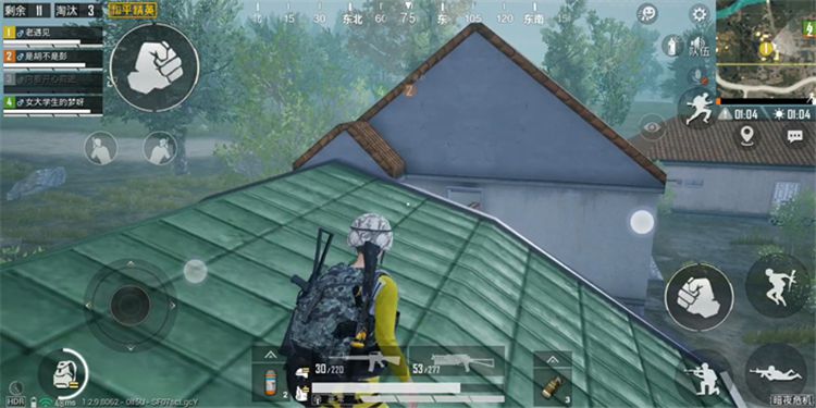 在R城的东边有一个类似于四合院的野区,这里也是一个非常好的点位,这里就牵扯到谷仓上房顶的技巧。我们先来到二楼,把西侧的玻璃打碎,跳到窗户上,调整好视角,慢慢的落到一二楼之间的凸出上,然后绕到建筑物的正面门这里就有一个平台,我们来到这就可以直接翻上屋顶,然后还可以通过谷仓楼顶跳到旁边两栋楼的楼顶。这个点位上去是需要一段时间的,所以大家要预留出足够的时间。